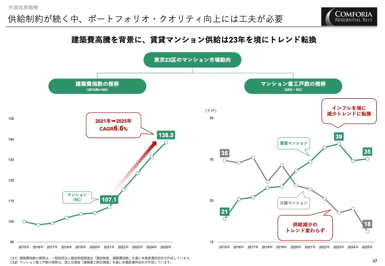 このような物件供給制約が続く中でポートフォリオのクオリティを向上させるためには、工夫が必要です。