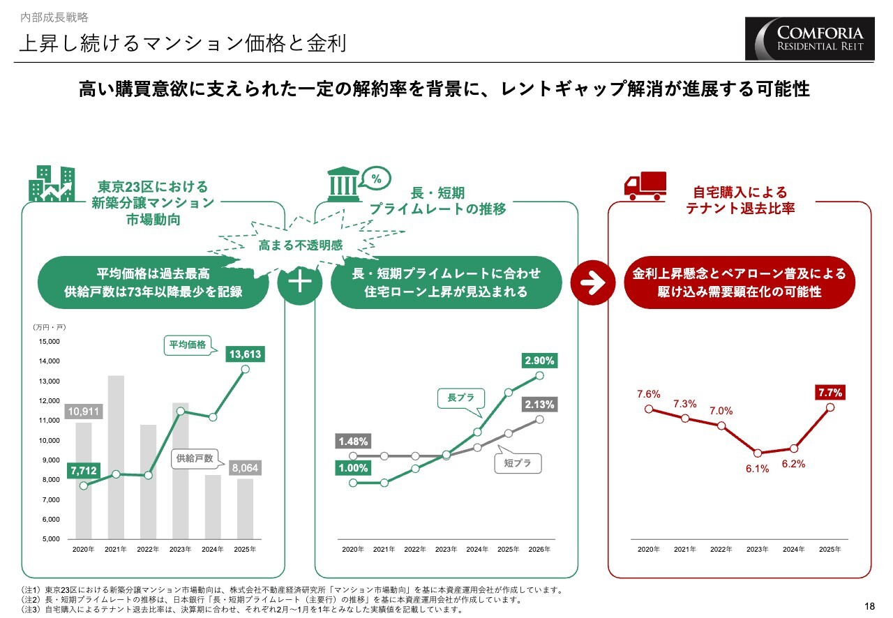 マンション価格の高騰や住宅ローンの上昇など、不透明感が高まる中でも高い購買意欲に支えられ、一定の解約率を背景にレントギャップの解消が進展しています。