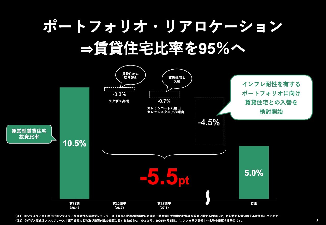ポートフォリオ・リアロケーション⇒賃貸住宅比率を95%へ