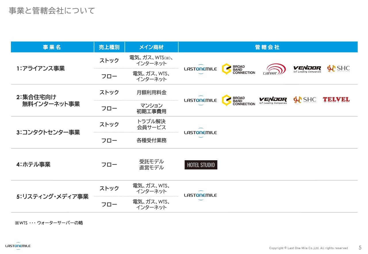 事業と管轄会社について
