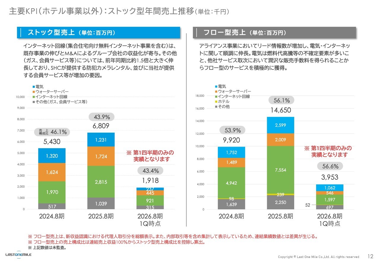 フロー型売上については、一時的な収益にはなりますが、アライアンス事業などの仕入において、リード情報数が大幅に増加しています。毎年営業活動が想定以上にうまくいっており、リード情報数が増加しているため、それに伴いフロー型収益も自動的に増加している結果となっています。