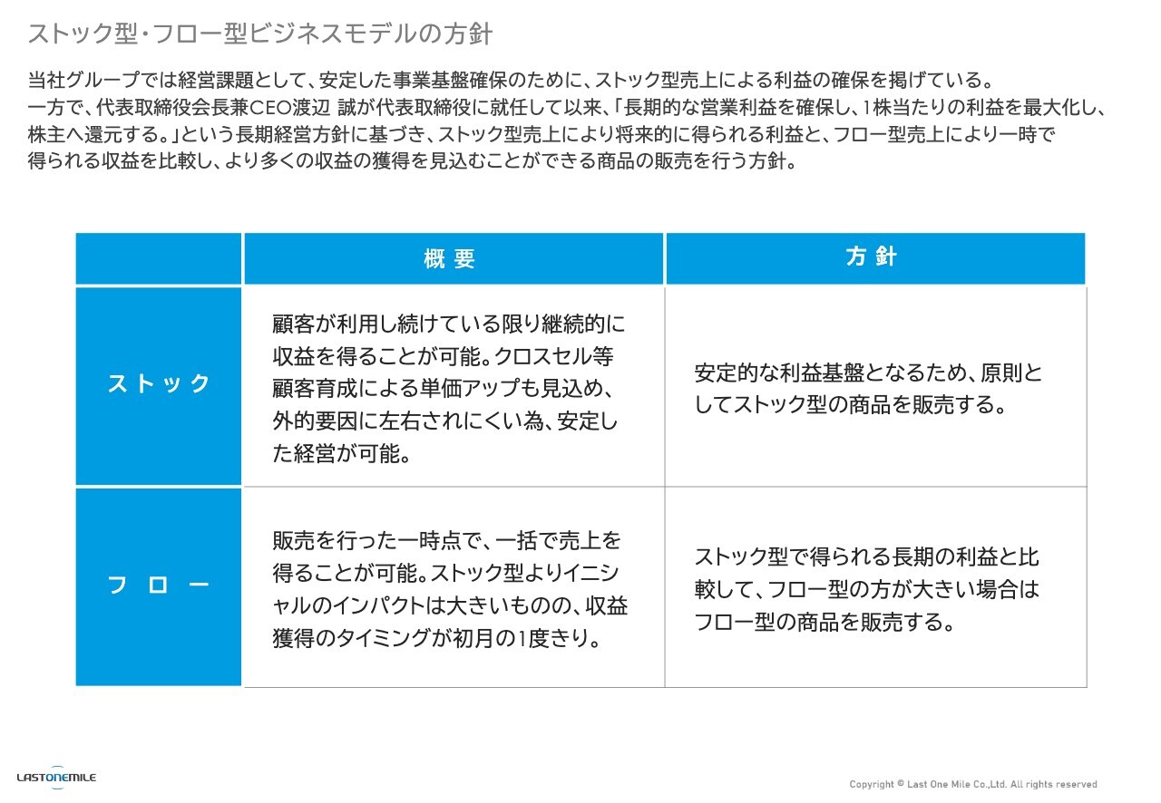 ストック型・フロー型ビジネスモデルの方針