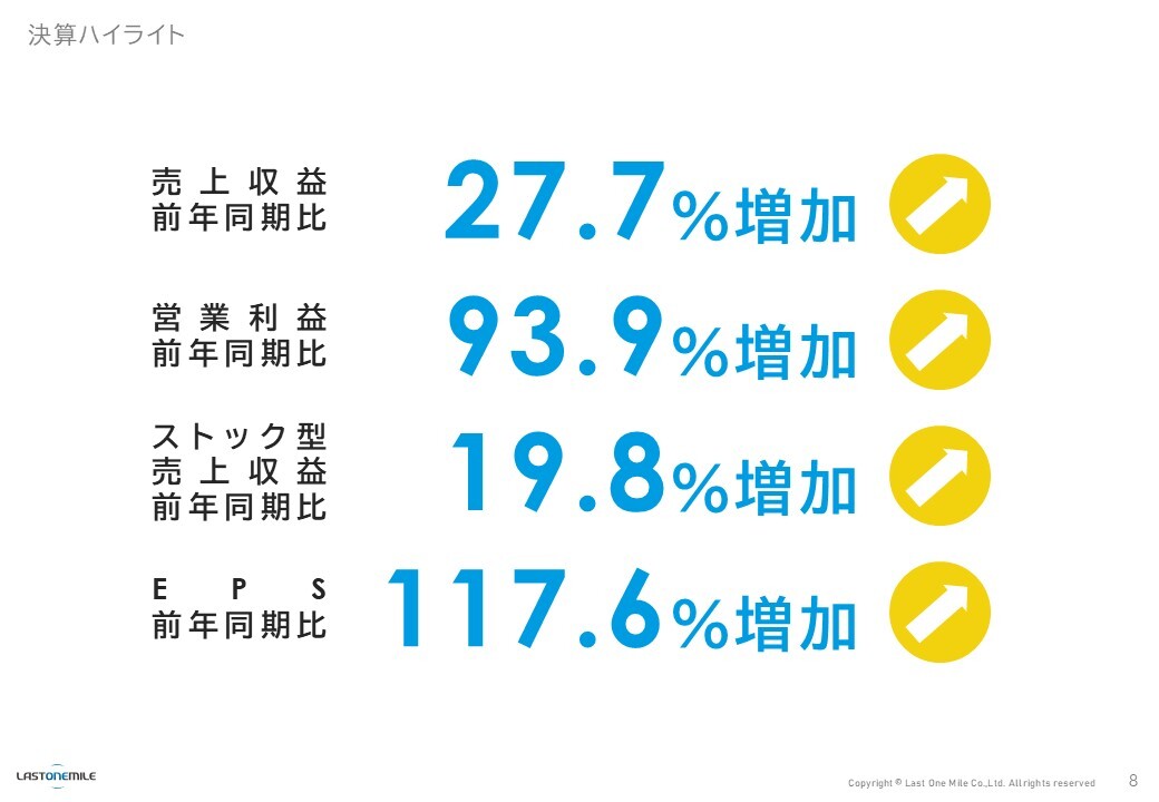 ラストワンマイル、営業利益はYoY+93.9%、増収増益で中計目標へ順調 前期実施の先行投資効果が発現