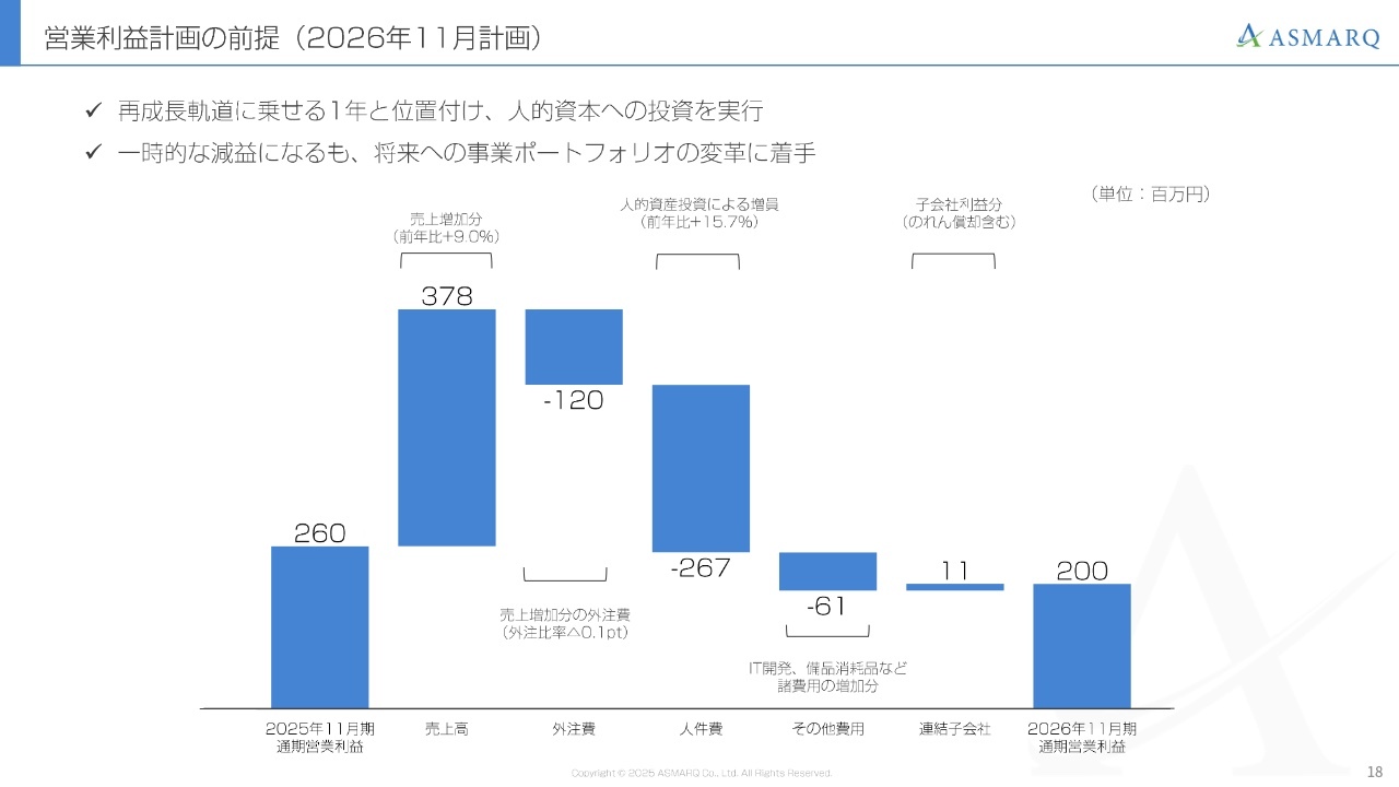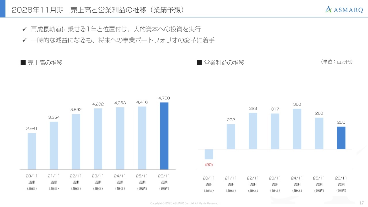 しかし、これは来期以降の成長を見据えた投資による結果です。来期以降の確実な成長に向けて、2026年11月は必要な取り組みをしっかりと進めていきます。