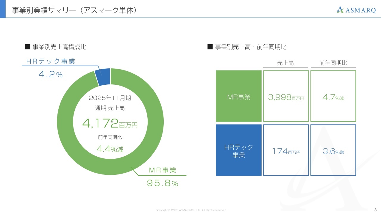 事業別業績サマリー(アスマーク単体)
