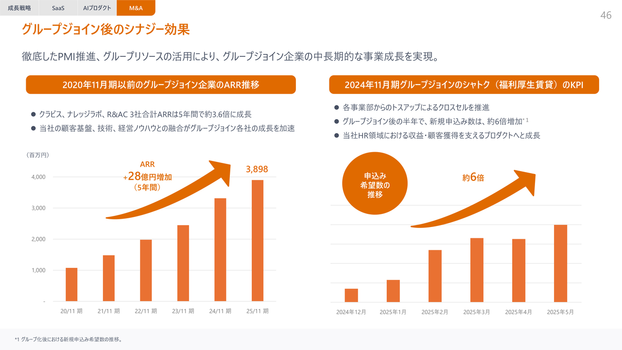 また、比較的最近グループジョインした福利厚生サービスのシャトク社においても、申込み希望数が半年で6倍に増加しており、今後のARRへの貢献が非常に期待できる状況です。以上が成長戦略の概要になります。