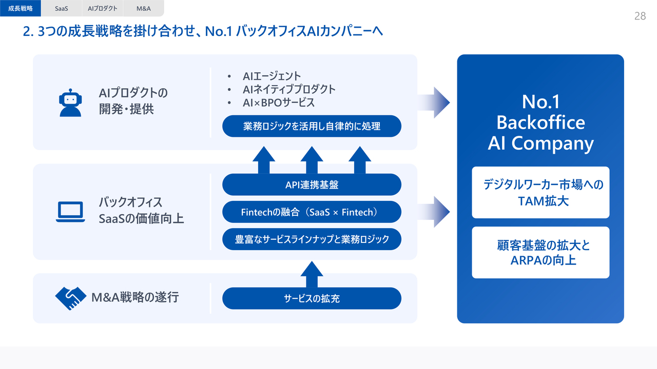 2. 3つの成長戦略を掛け合わせ、No.1 バックオフィスAIカンパニーへ