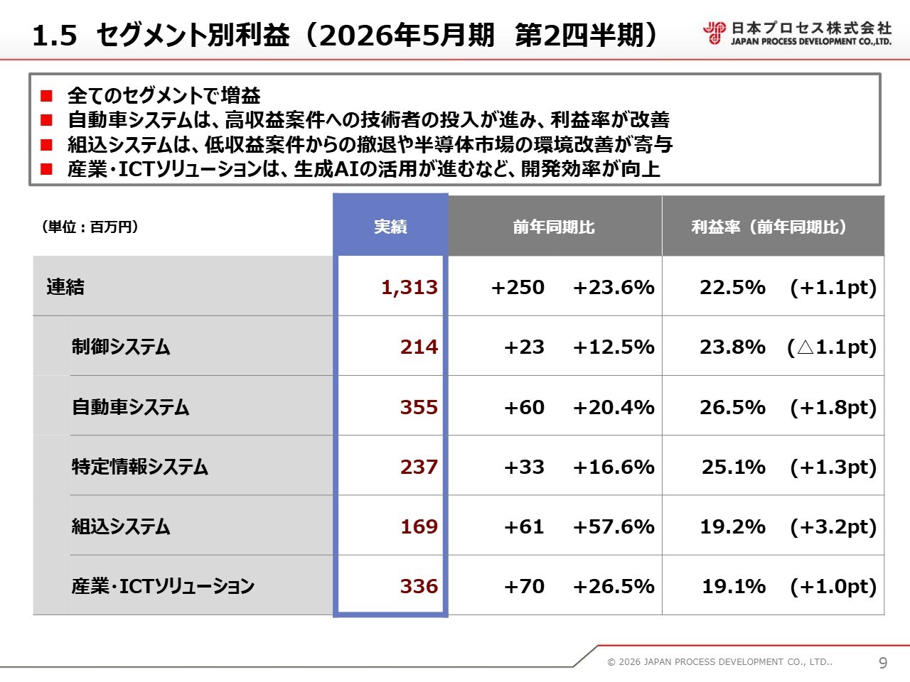 1.5 セグメント別利益(2026年5月期 第2四半期)