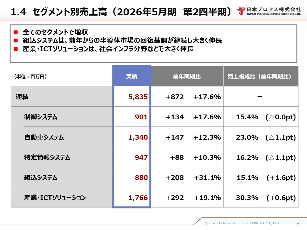 1.4 セグメント別売上高(2026年5月期 第2四半期)