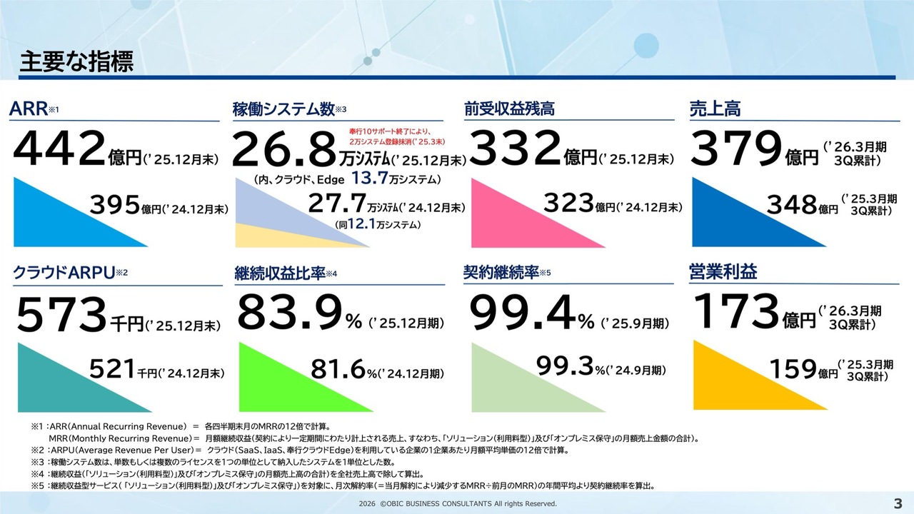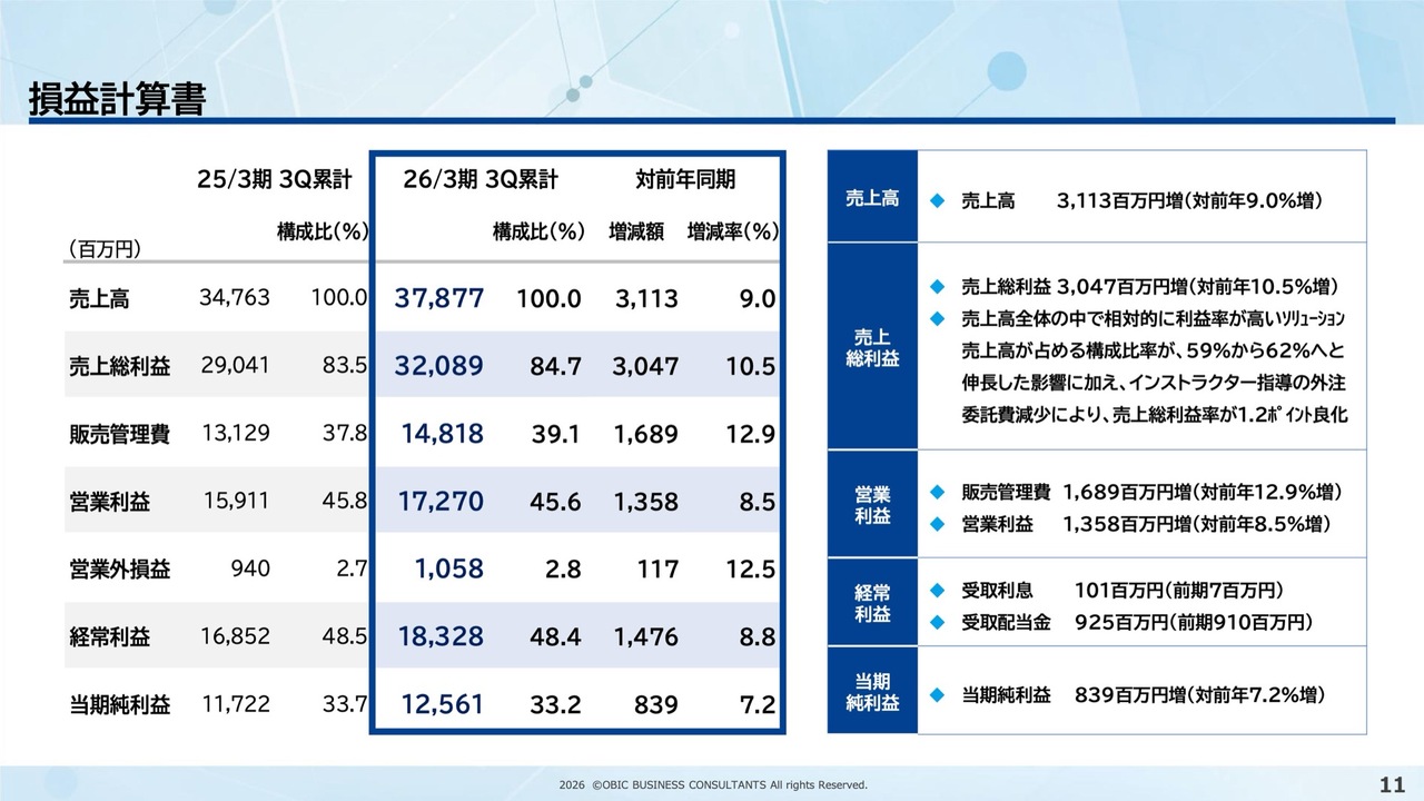 小泉明大氏:みなさま、お忙しい中、本日は弊社の第3四半期決算説明会にご参加いただき、誠にありがとうございます。株式会社オービックビジネスコンサルタント執行役員管理本部管理部部長の小泉明大です。