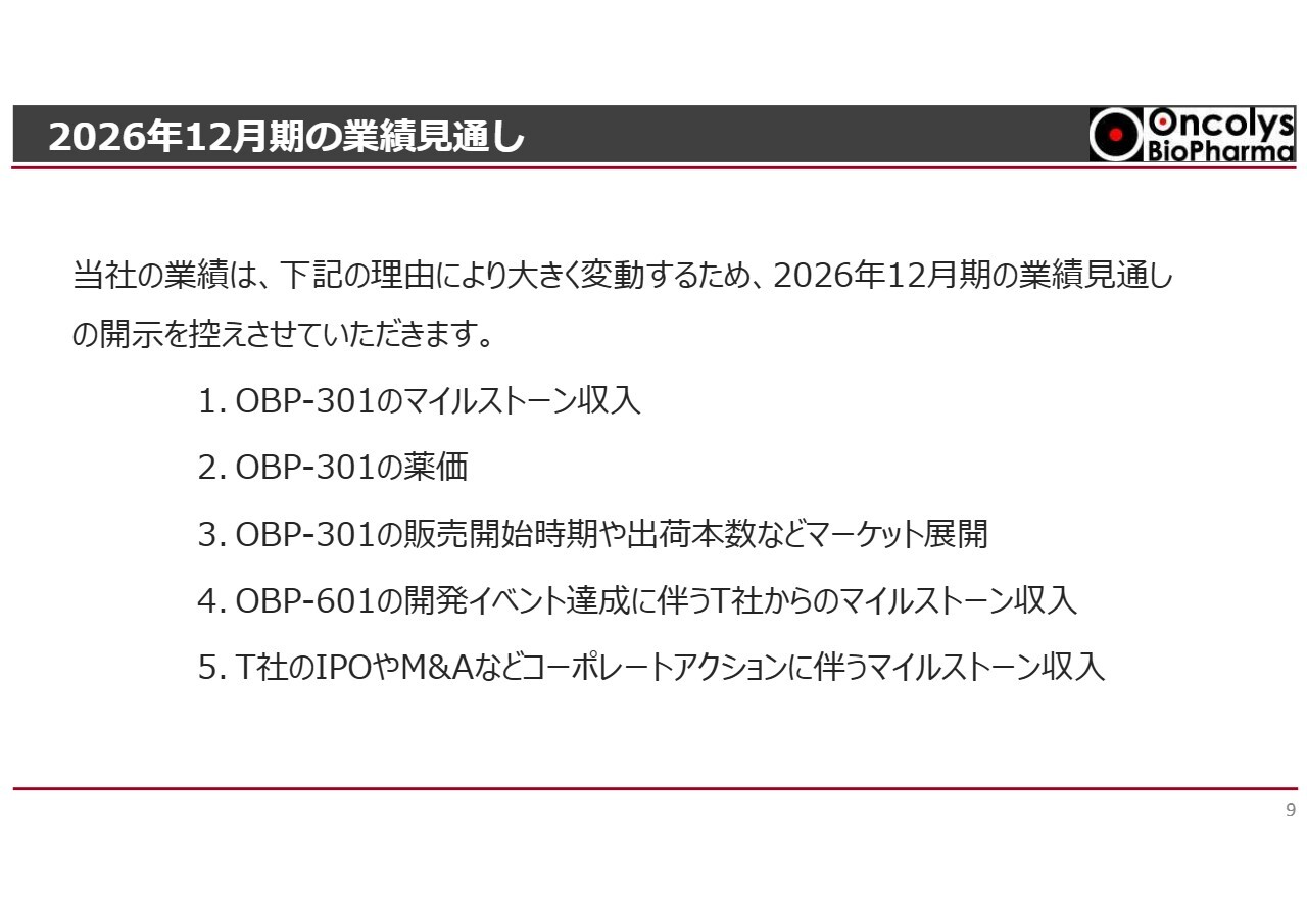 これにより、「テロメライシン」の売上高が計上される見込みです。また、「テロメライシン」や「OBP-601」のマイルストーン収入も見込んでいます。