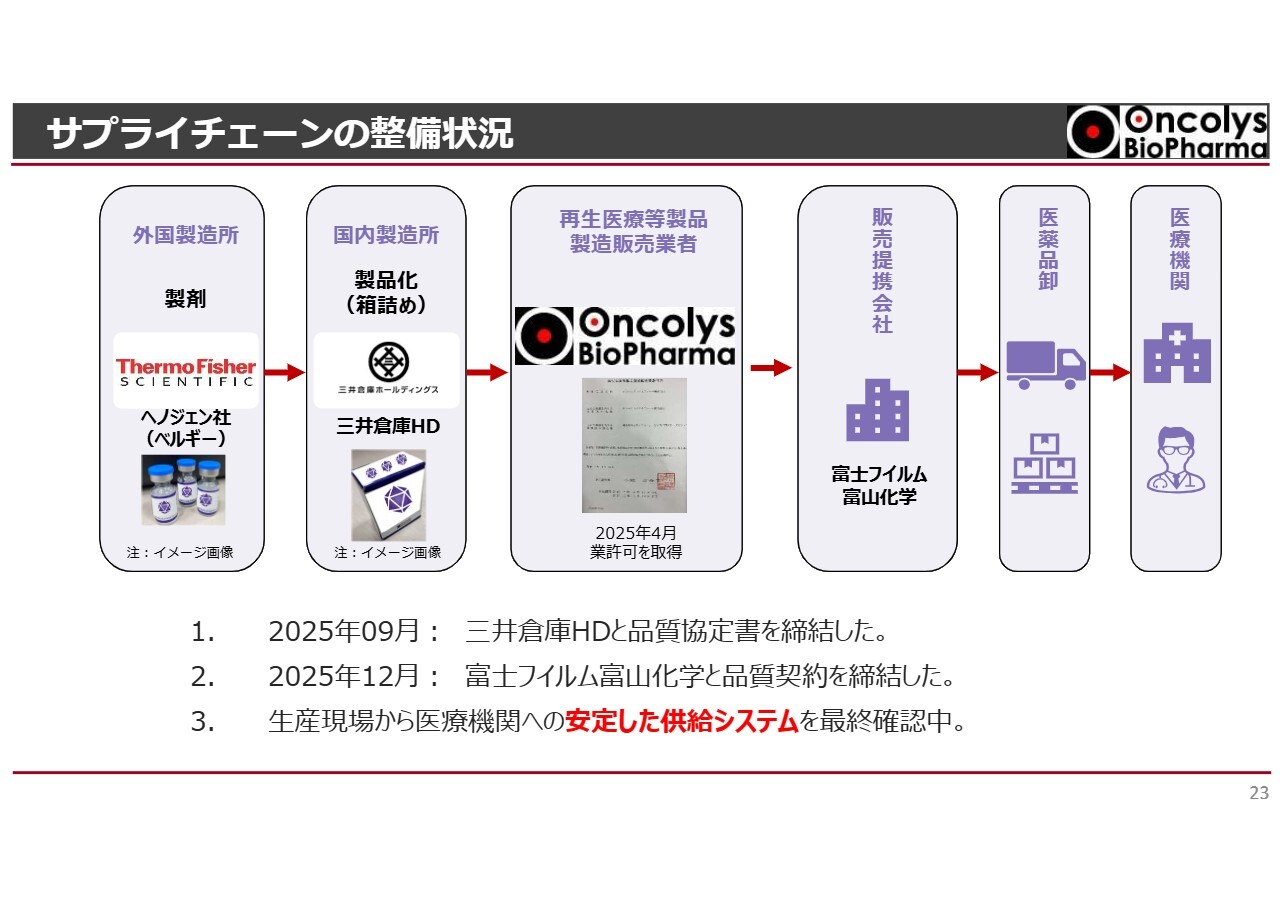 昨年ご報告のとおり、品質に関しては三井倉庫ホールディングスおよび富士フイルム富山化学と契約を締結済みです。