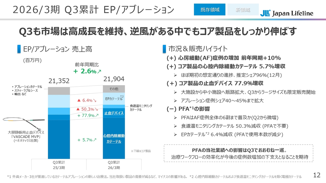 一方、マイナス要因として、EP/アブレーションでPFAが浸透したことにより、当社の一部製品の売上が減少しました。したがって、プラス・マイナス両方の影響がありました。