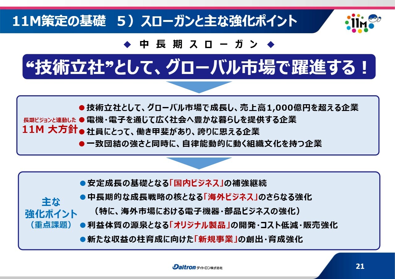 11M策定の基礎 5)スローガンと主な強化ポイント