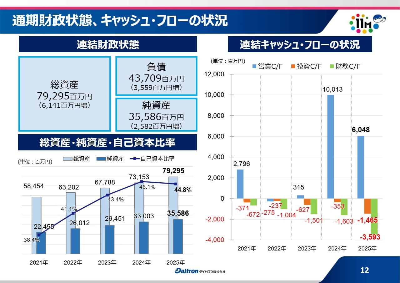 通期の財政状態とキャッシュ・フローの状況に関しては、スライドをご参照ください。
