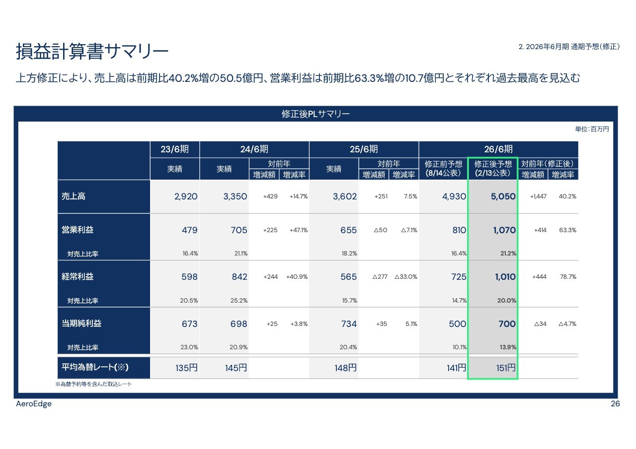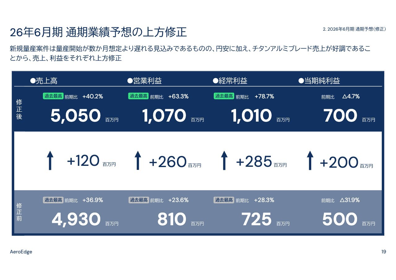 森西:2026年6月期の業績予想の上方修正についてご説明します。