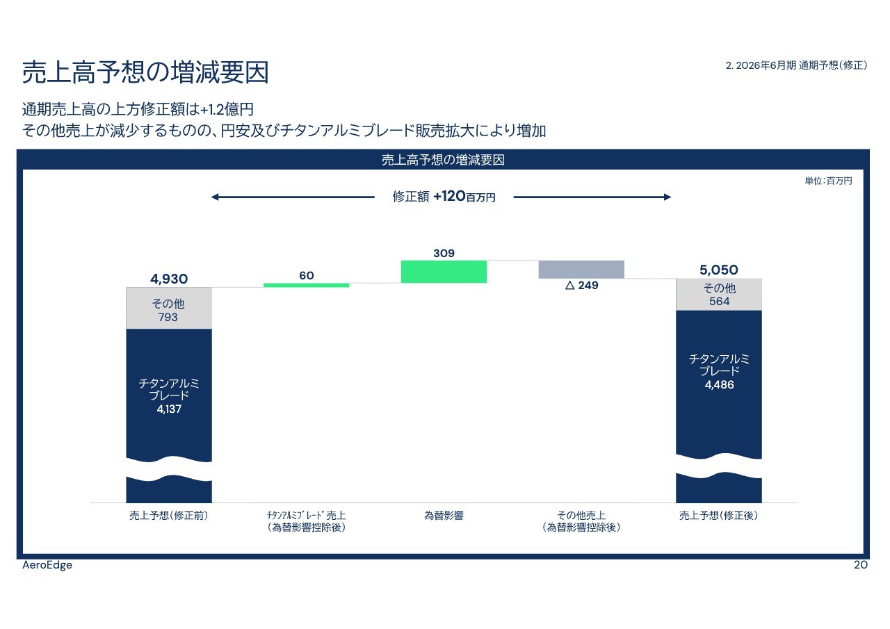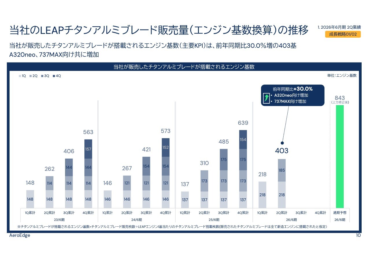 また、急激な増加により、チタンアルミブレードの材料供給が潤沢であるとは言えず、増産に必要な供給がギリギリの状態で続いています。こうした状況を総合的に勘案しながら、必要に応じて販売見込みの修正を検討していきたいと考えています。