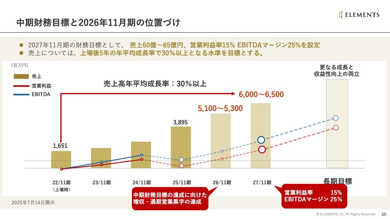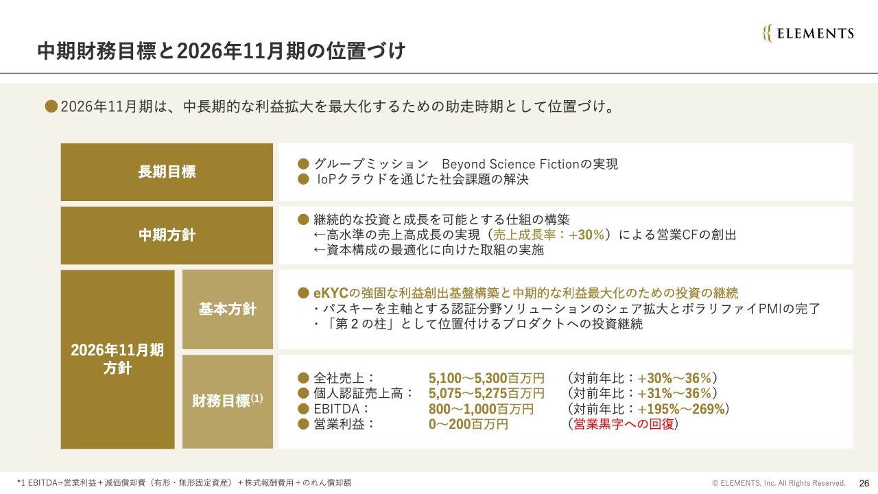 中期財務目標と2026年11月期の位置づけ