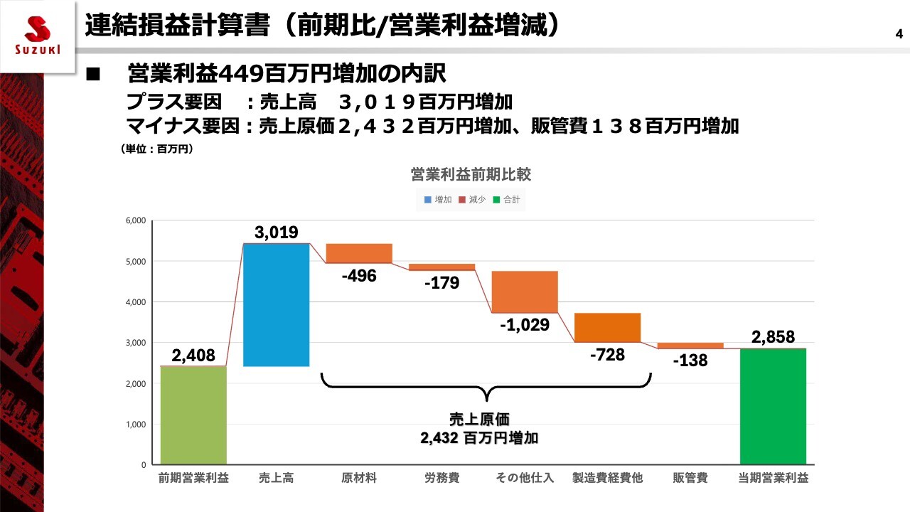 鈴木、上期売上は前年比+18.6%、営業利益+18.6% スマホ向けの好調等で4期連続最高益更新へ