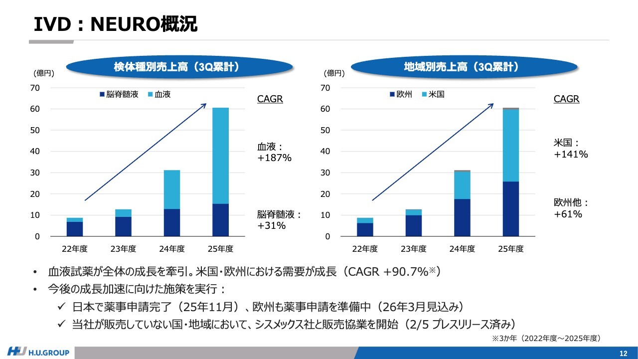 IVD事業は、NEURO関連が引き続き高い成長を見せており売上は約60億円に達し、前年同期比で2倍となりました。