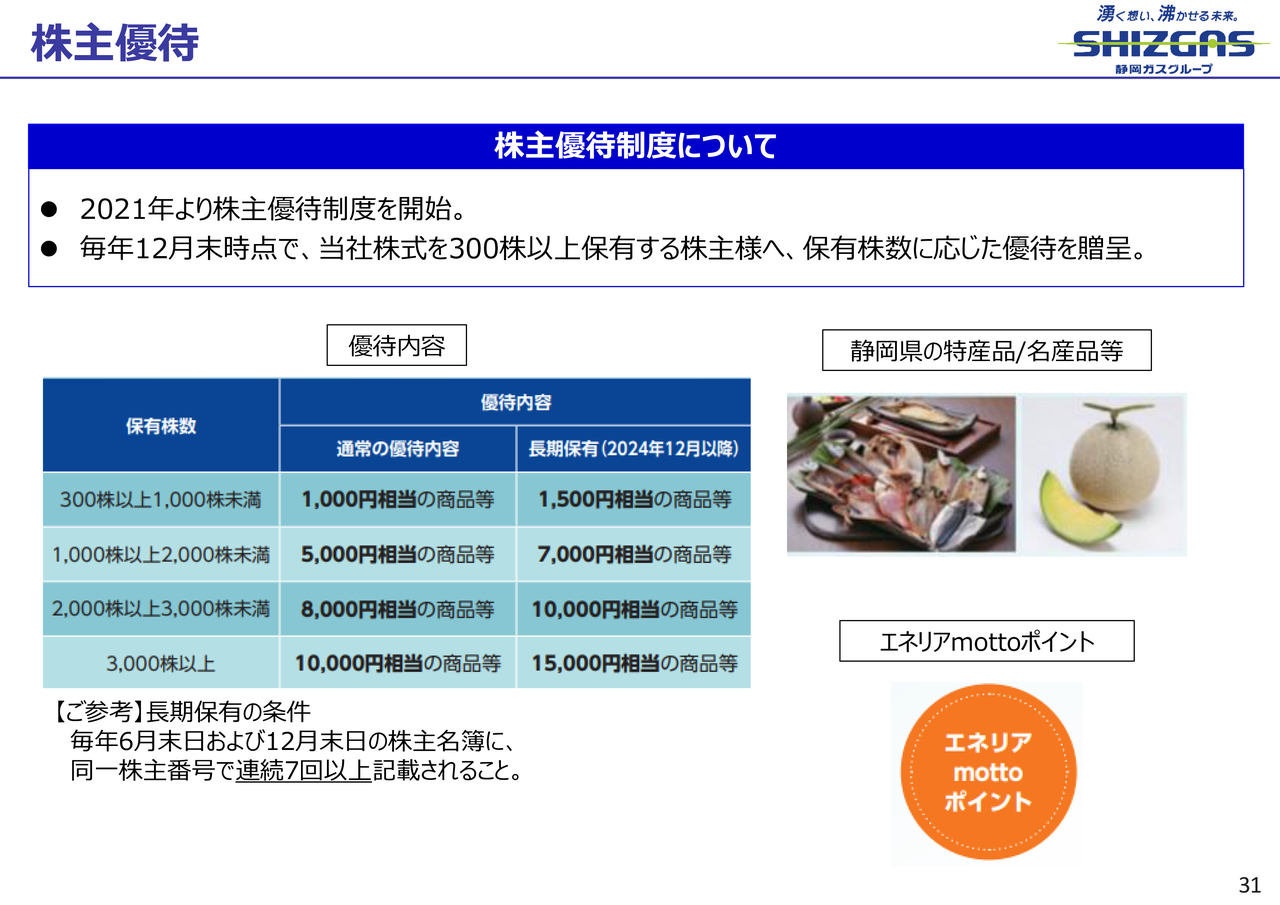 〈参考〉静岡ガスの株主優待制度について