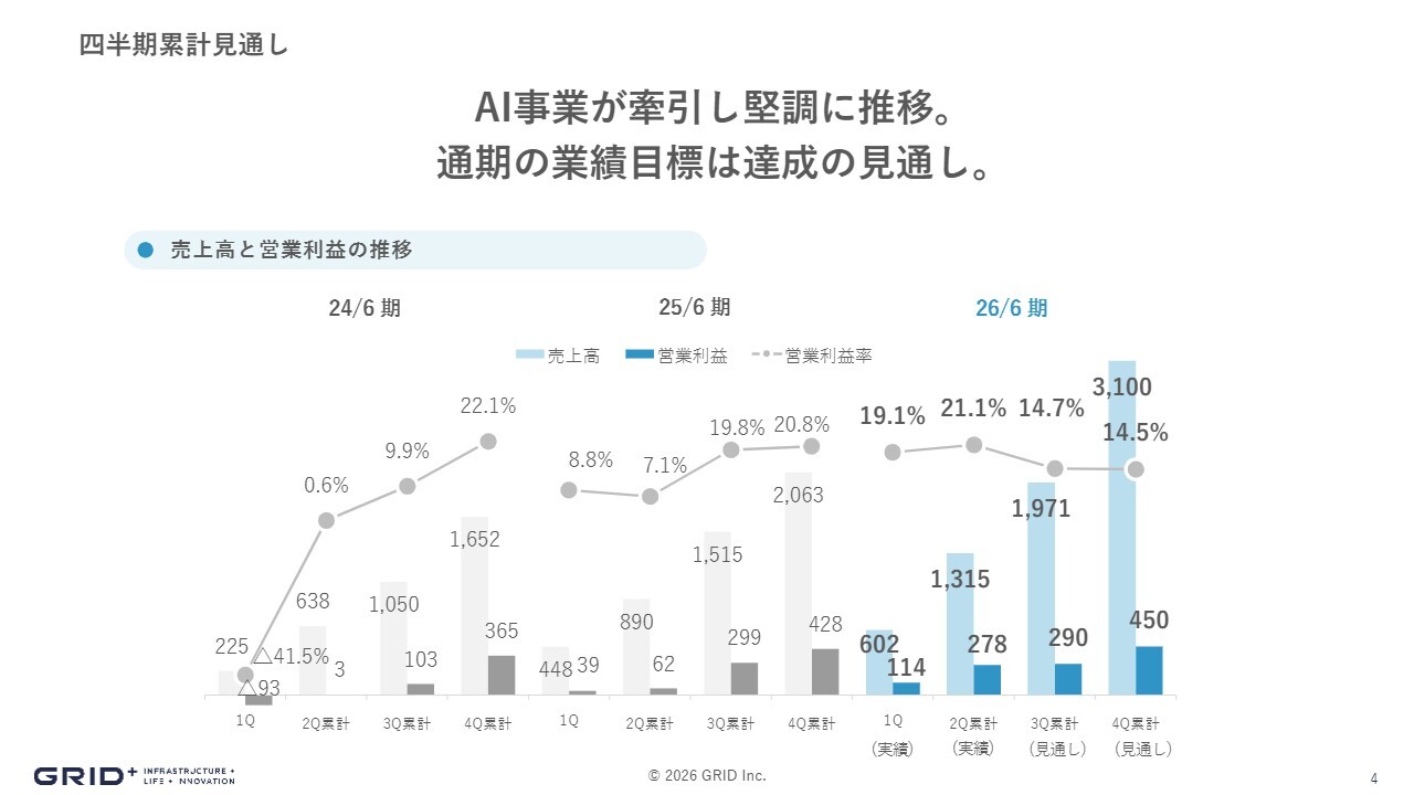 曽我部完氏(以下、曽我部):みなさま、こんにちは。株式会社グリッド代表取締役社長の曽我部完です。2026年6月期第2四半期の決算説明を行います。