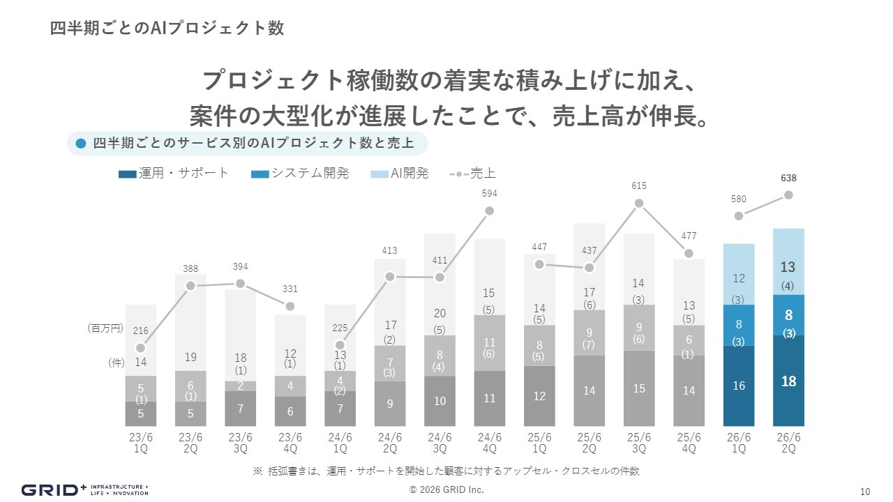 また、それぞれの顧客単価も上昇しており、プロジェクトの本番導入が堅調に進んでいる結果となりました。