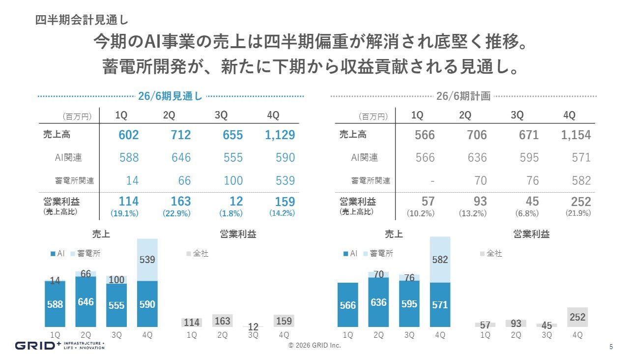 また、AI事業に関しては、これまでの下期偏重型から、売上が平準化される傾向が見られます。今期は比較的、AI関連の売上が平準化されている状況です。