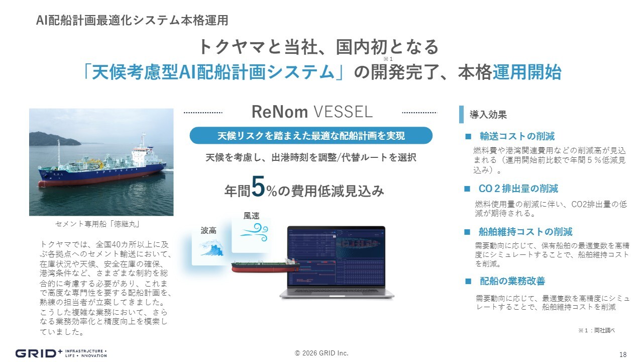 配船分野では、トクヤマさま向けに新しいシステム導入が完了し、本格運用が開始されました。