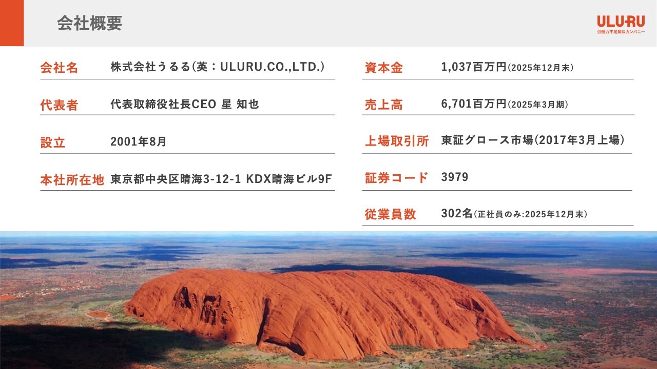 星:「うるる」という名前の意味合いも非常に良く、私たちはチームや組織作りに力を入れている会社です。「ウルル」という世界最大級の一枚岩にちなみ、組織も一枚岩であるべきだという思いを社名に込めました。また、エアーズロック自体も正式名が「ウルル」に変更されていますが、このウルルは先住民アボリジナルの方々にとって聖地とされています。
