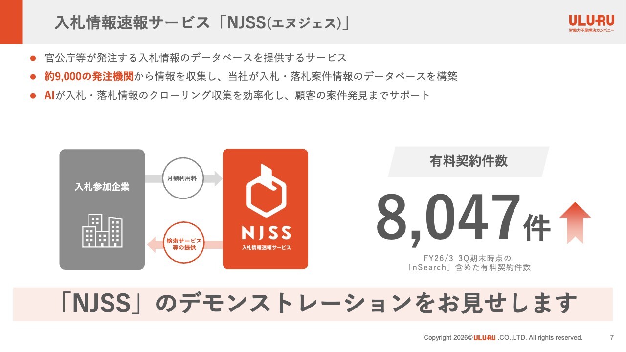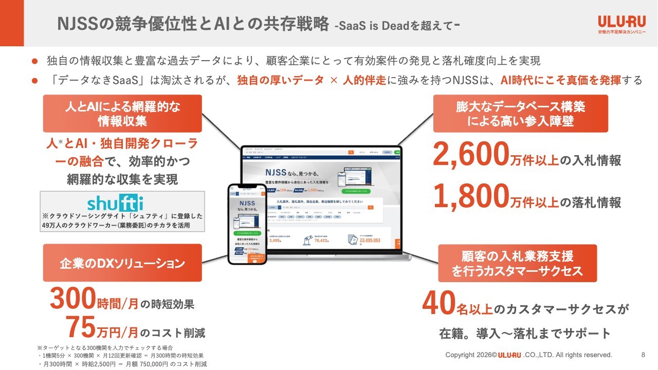 岡田:ここまでは、うるる社の会社概要とビジョンについてお聞きしてきました。本日は、うるる社の主力ビジネスである「NJSS(エヌジェス)」についても詳しくご説明いただけるとうかがっています。