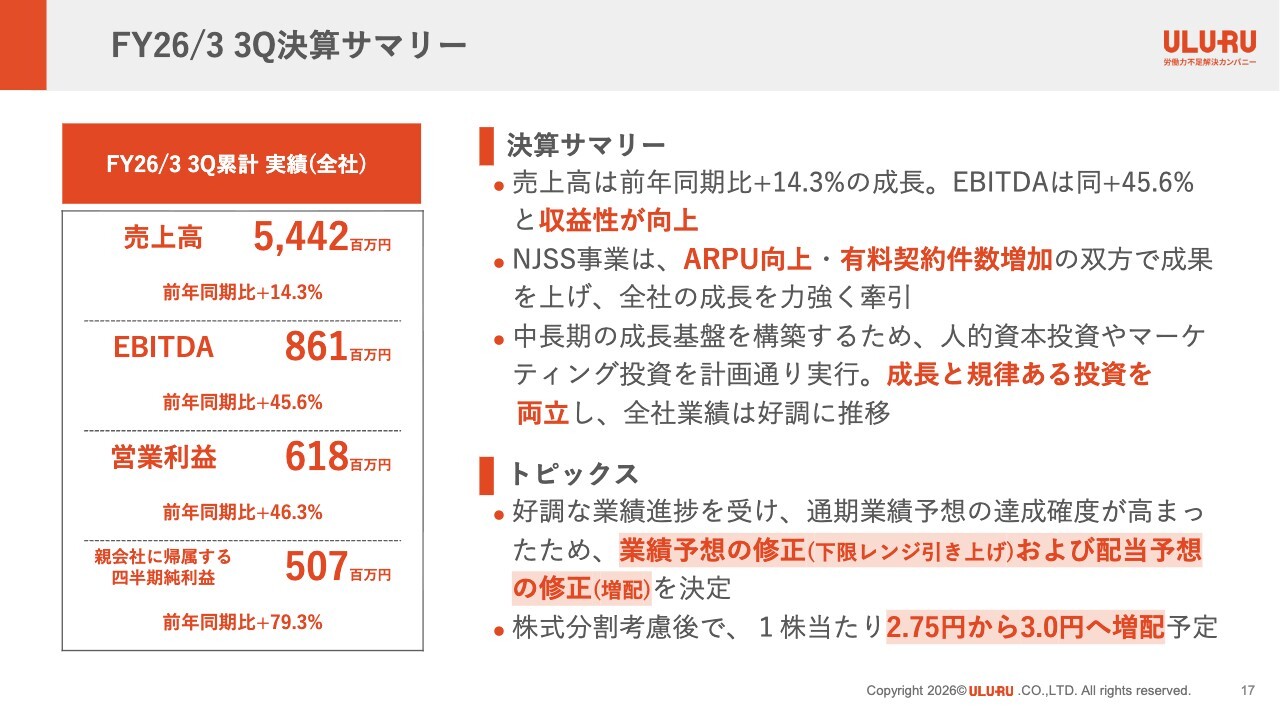 また、株主還元にも力を入れています。配当性向15パーセントを目安に方針を公表していますが、業績が好調なため、1株当たり2.75円だった配当を3円に増配する予定です。