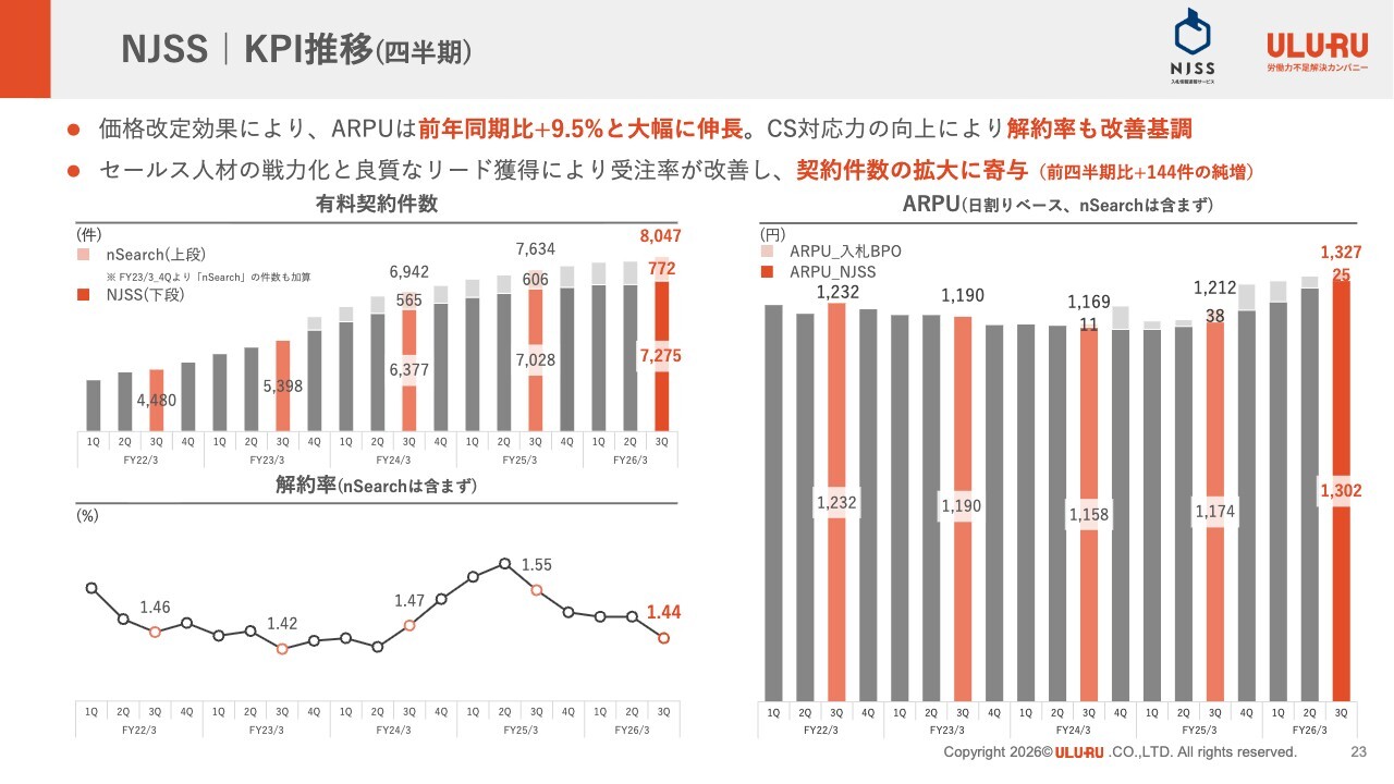 星:先ほどお話ししたARPUについてもスライド右側に示しています。単価になりますが、現在上昇基調であり、取り組みがうまくいっている状況です。