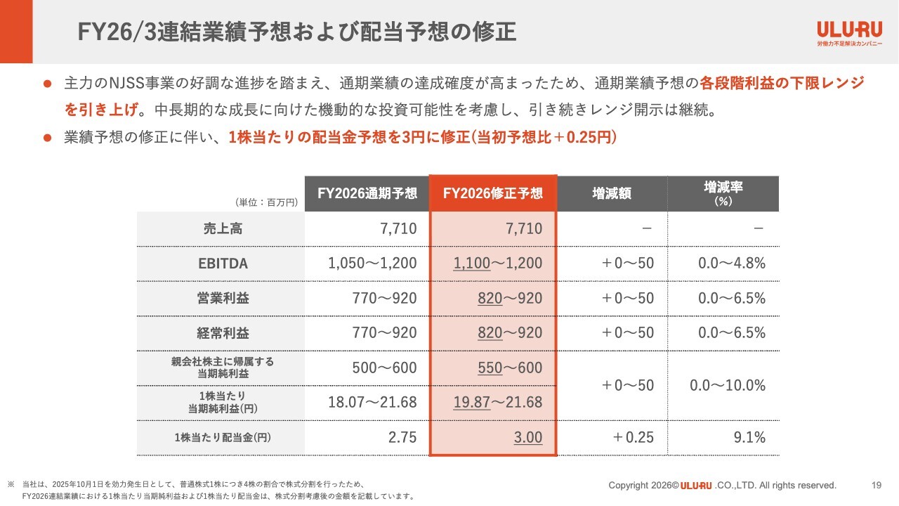 それに伴い、営業利益や経常利益についても同様に引き上げました。また、1株当たりの配当金も2.75円から3円へと増額しました。