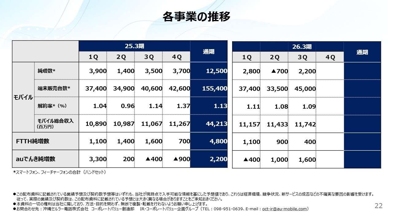 また、足元ではモバイルと同様に新規契約の獲得が順調に推移しているため、第4四半期にかけても純増トレンドを維持できると想定しています。通期で4,400契約の純増を目指していきます。