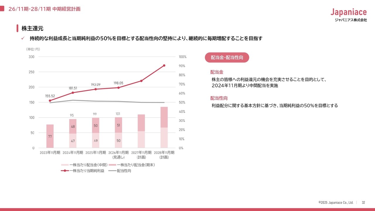 また、株主のみなさまへの利益還元機会を充実させることを目的として、2024年11月期より開始した中間配当も継続していきます。