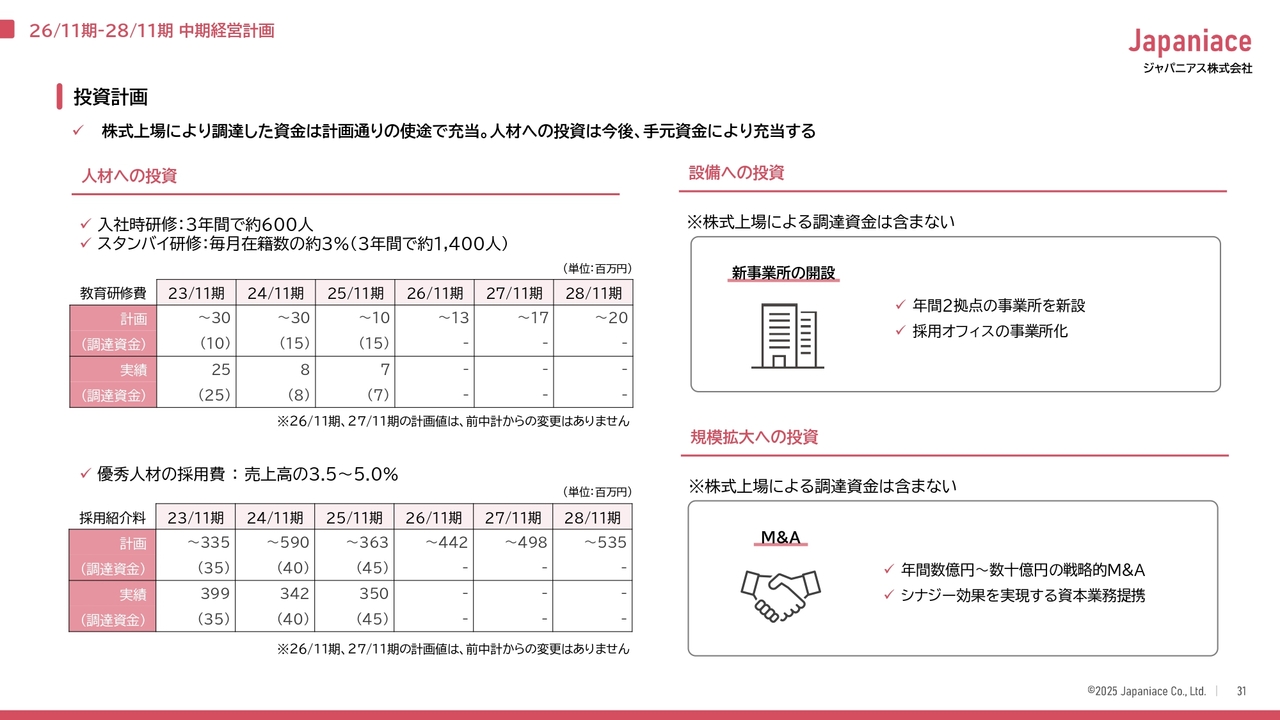 当社は2022年に株式を上場しましたが、その際に調達した資金は、2025年11月期に計画どおり使い切りました。今後は、手元資金を活用した投資を進めていきます。