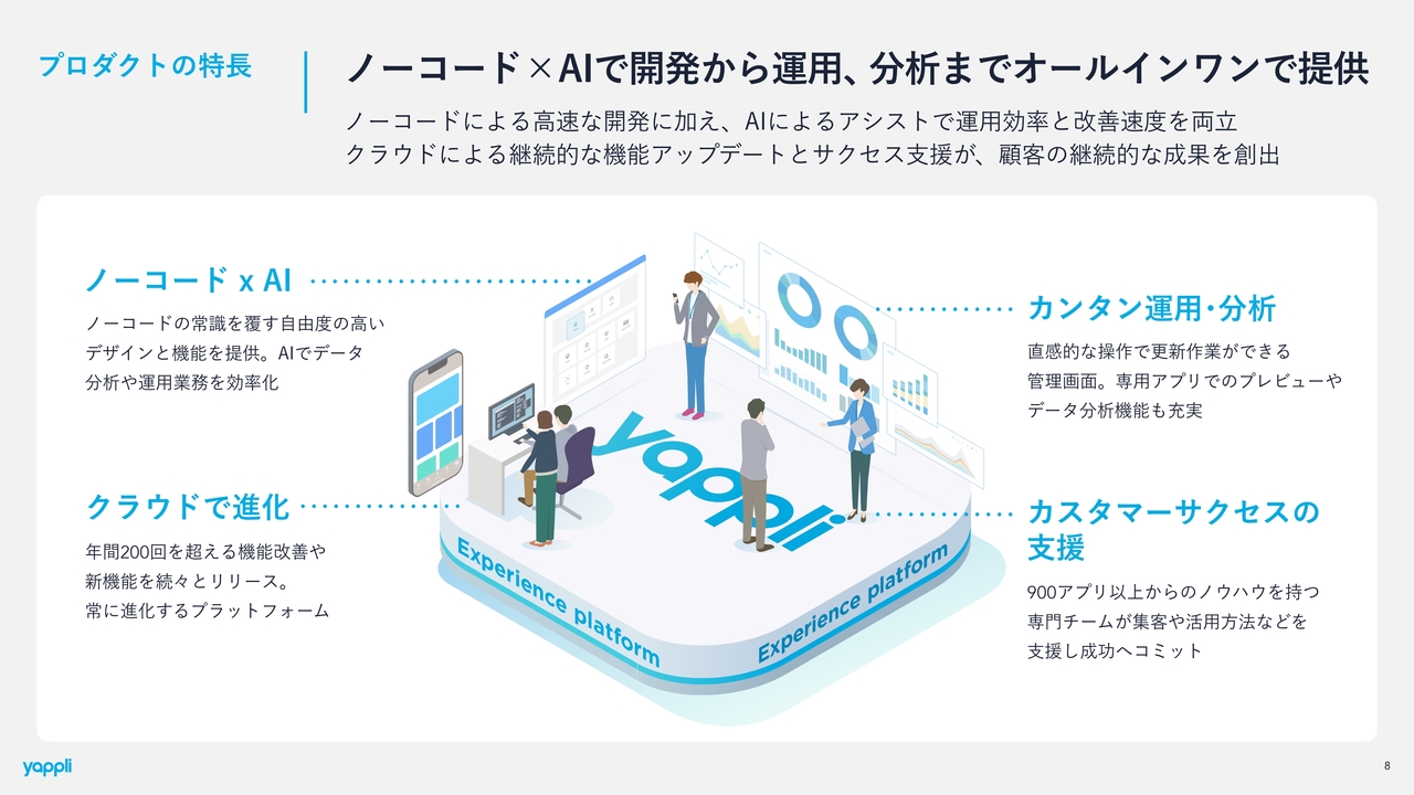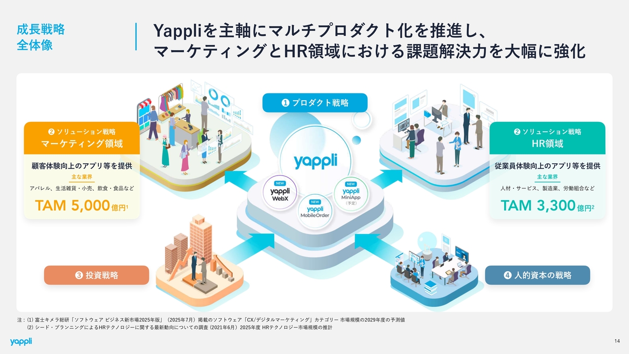 プロダクト戦略、ソリューション戦略、投資戦略、人的資本戦略という4つの成長戦略を通じて、ヤプリをさらに成長させていきます。