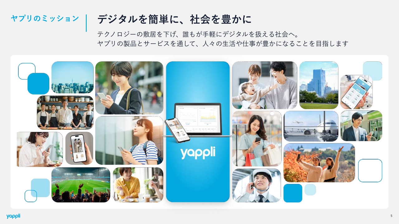 ヤプリのミッションです。「デジタルを簡単に、社会を豊かに」としています。