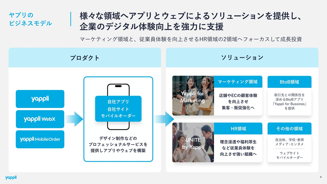 それぞれ、「Yappli for Marketing」や「UNITE」といったソリューション名で展開しています。