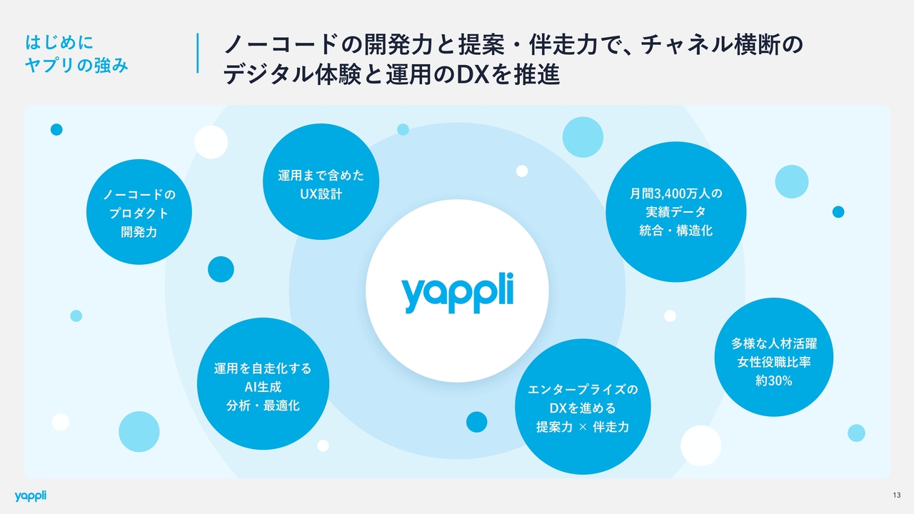 昨年に比べてプロダクト数が増えたため、事業概要も大きく変化し、アプリ開発プラットフォーム「Yappli」以外にも、さまざまなプロダクトを提供する企業へと進化しています。