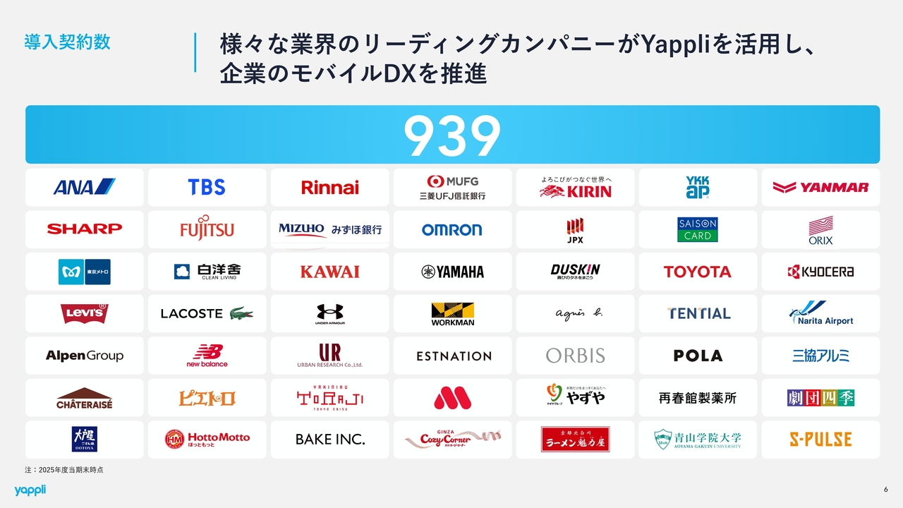 導入契約数は939件と大幅に増加しました。これはアプリ事業の順調な成長に加え、「Yappli WebX」の契約件数も増加したことが背景にあります。詳細は、後ほどご説明します。