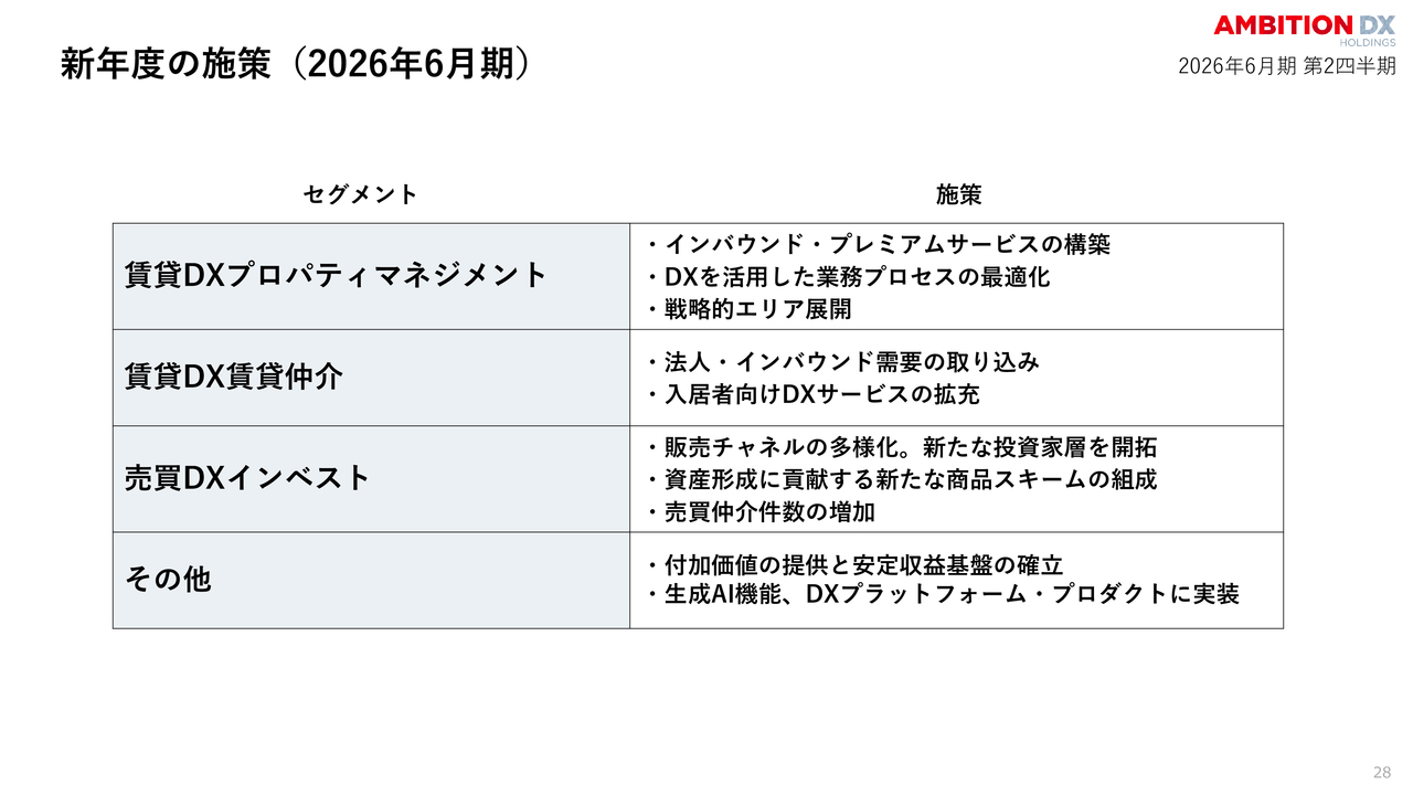 新年度の施策(2026年6月期)