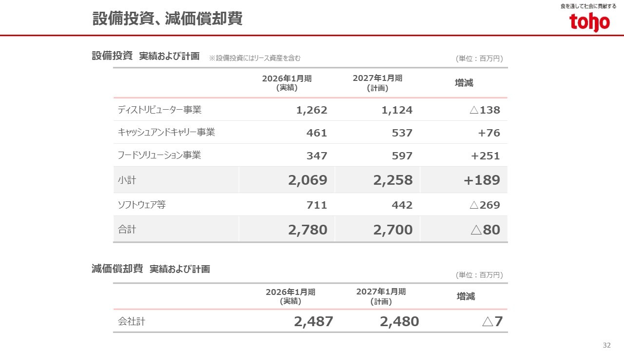 また、キャッシュアンドキャリー事業では新店舗の展開に加え、計画的な移転や改装を進めていきます。さらに、システム関連への投資も計画し、実施していきます。
