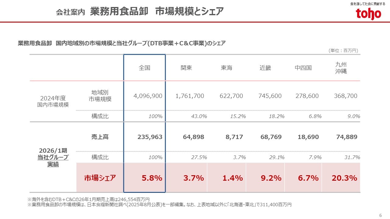 特に関東地区は、国内外食市場の43パーセントを占める巨大な市場ですが、当社グループのシェアは3.7パーセントにとどまっています。そのため、さらに市場開拓を強化していきたいと考えています。