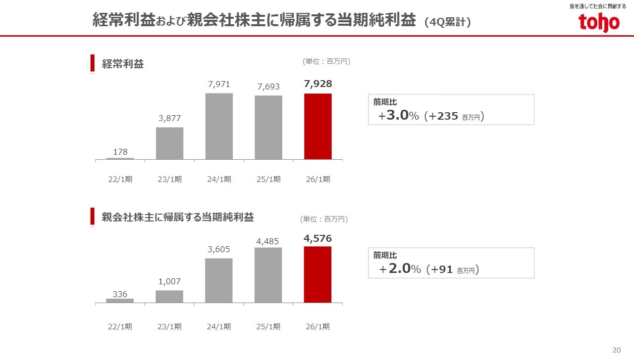 経常利益および親会社株主に帰属する当期純利益(4Q累計)