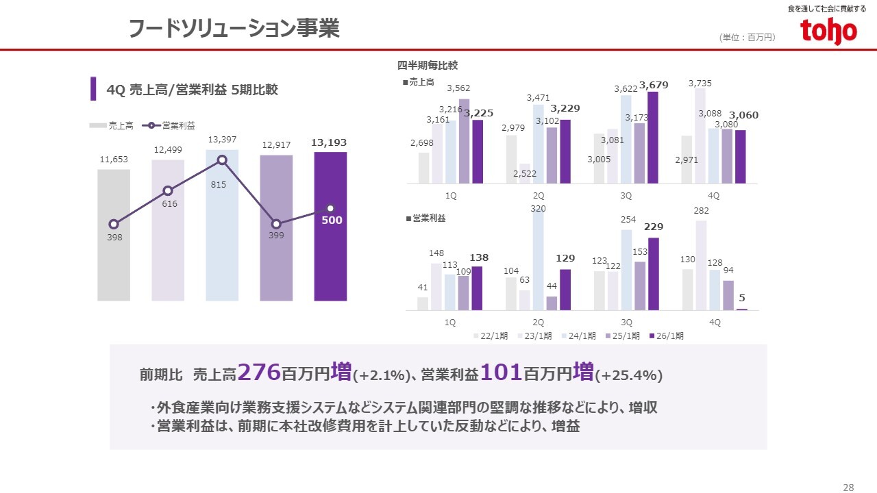 外食産業向け業務支援システムなど、システム関連部門の販売が堅調に推移した結果、売上高は131億9,300万円で、前期比2.1パーセント増となりました。
