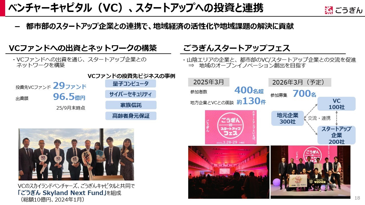 スライド右側をご覧ください。2025年3月には、山陰エリアの企業と都市部のベンチャーキャピタル、スタートアップ企業の交流を促進することを目的に、「ごうぎんスタートアップフェス2025」を開催しました。