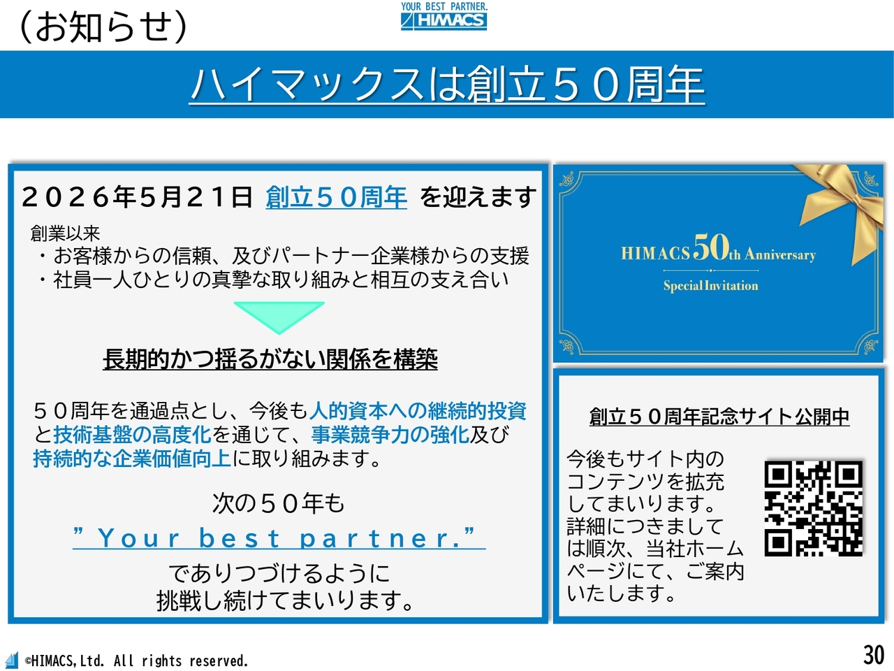 また、50周年記念サイトを期間限定で公開していますので、ご覧いただければ幸いです。