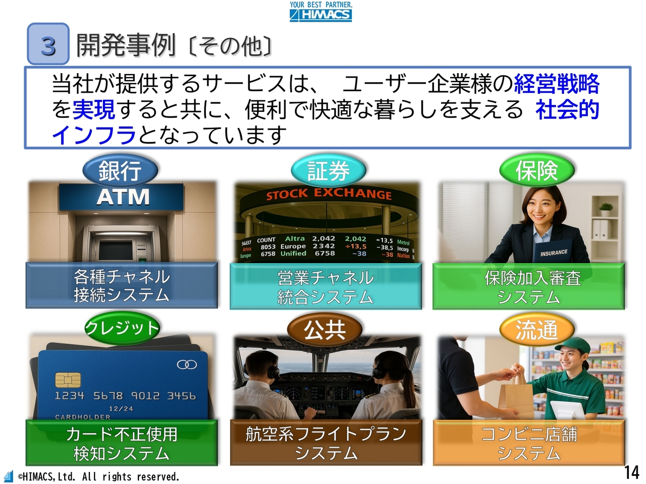 中島:ここからは、みなさまの生活の中で当社が開発に携わったシステムが活用されている事例を、いくつかご紹介します。
